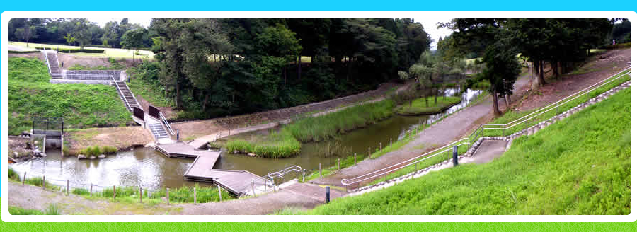 木に囲まれて、池の水が涼しく感じるエリアです。散歩コースにご利用ください。